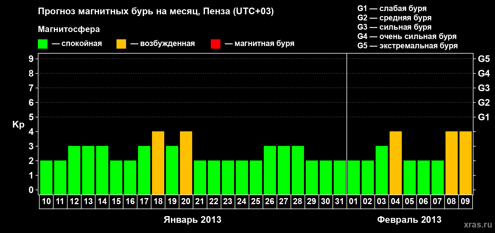 Прогноз магнитных бурь в Пензе — 10 января 2013 года