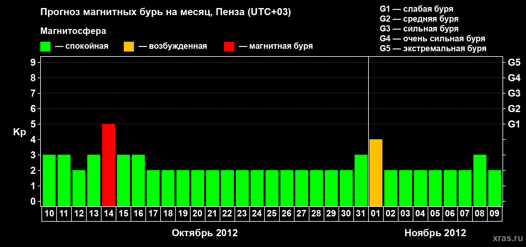 Прогноз магнитных бурь в Пензе — 10 октября 2012 года