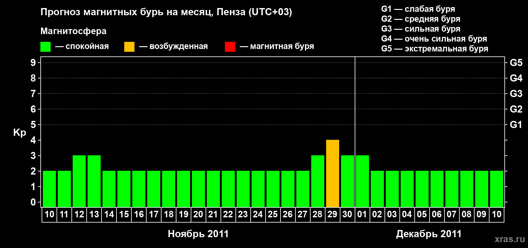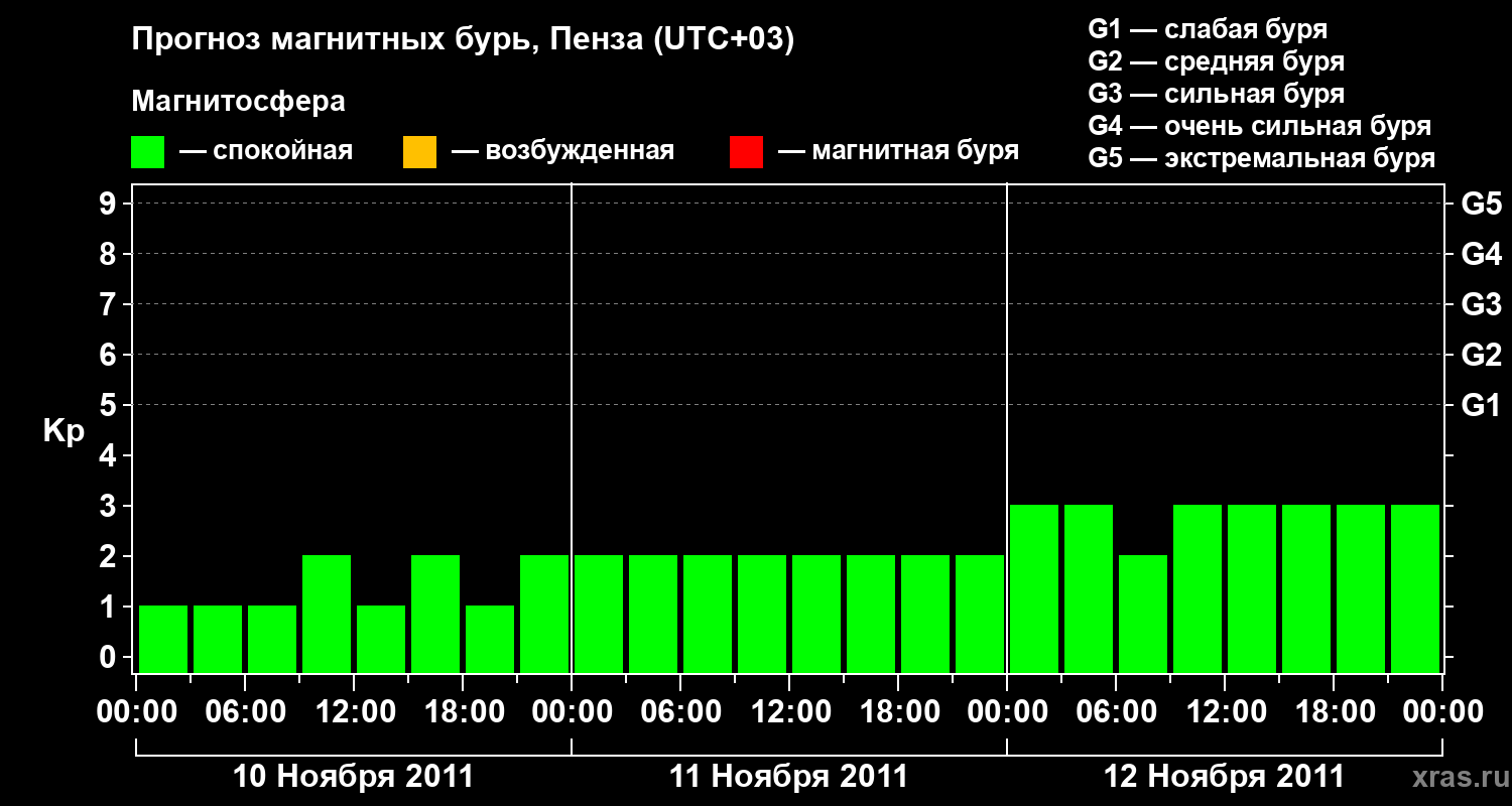 Прогноз магнитных бурь в Пензе — 10 ноября 2011 года