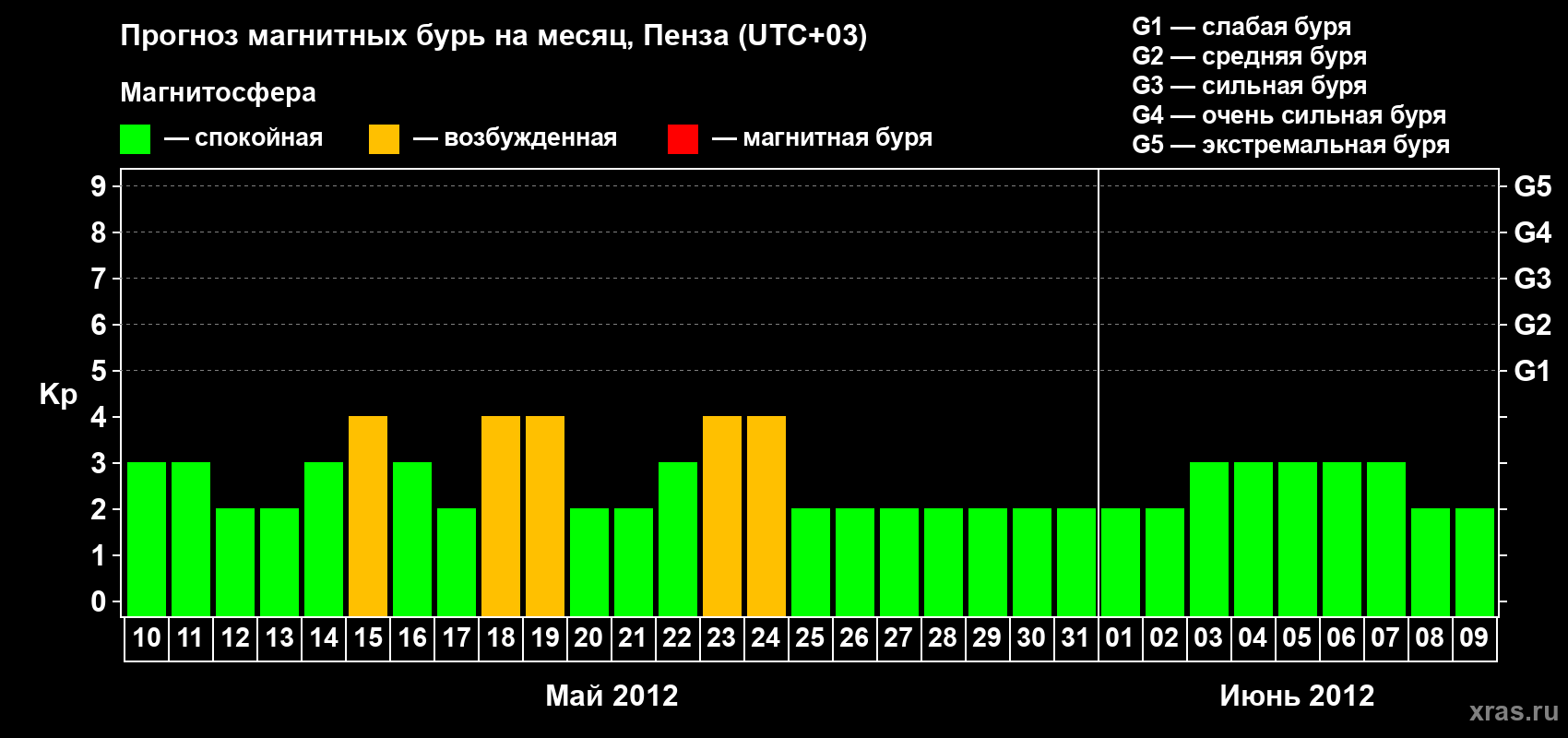 Прогноз магнитных бурь в Пензе на 10 мая 2012 года