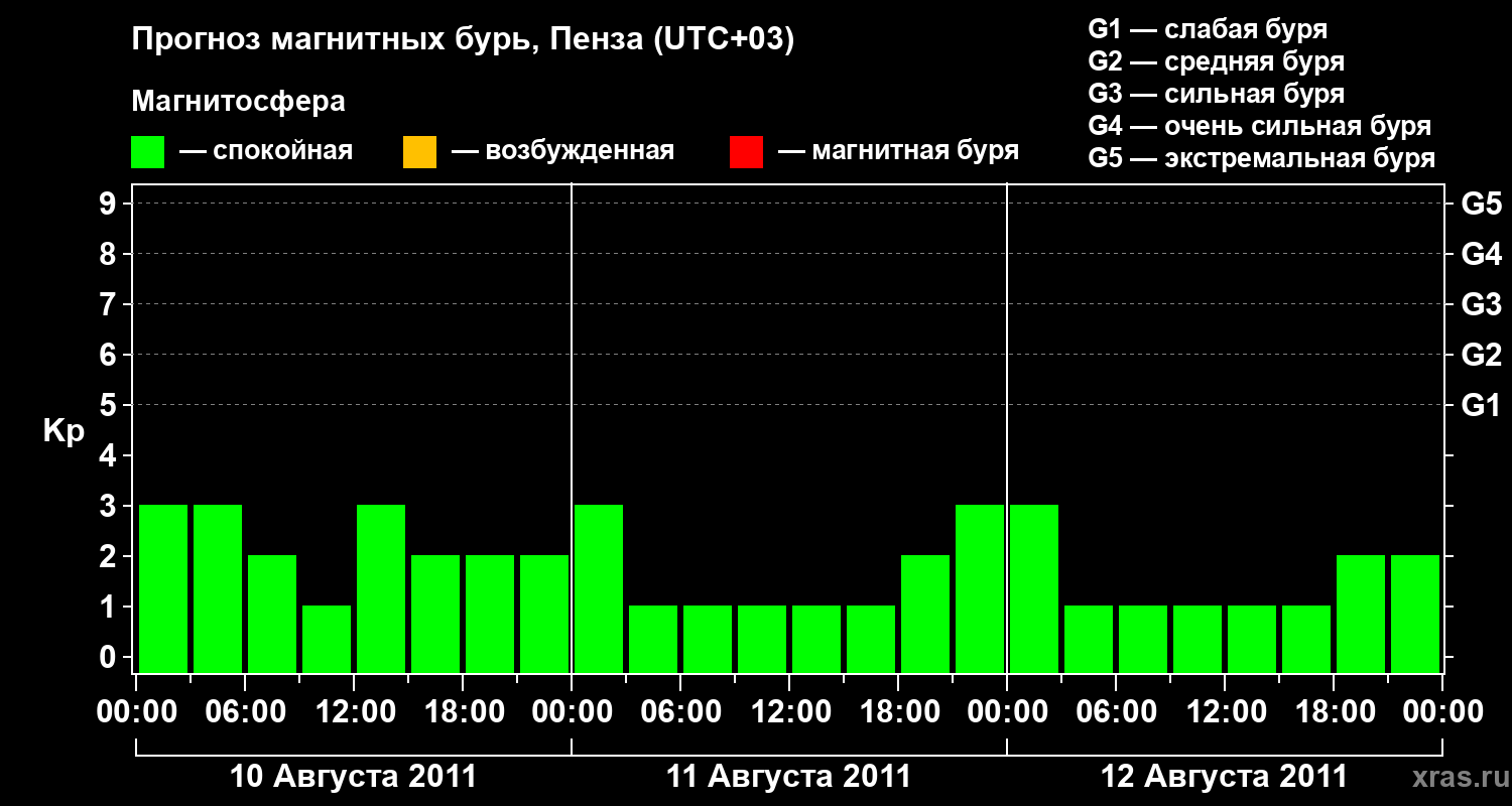 Прогноз магнитных бурь в Пензе — 10 августа 2011 года