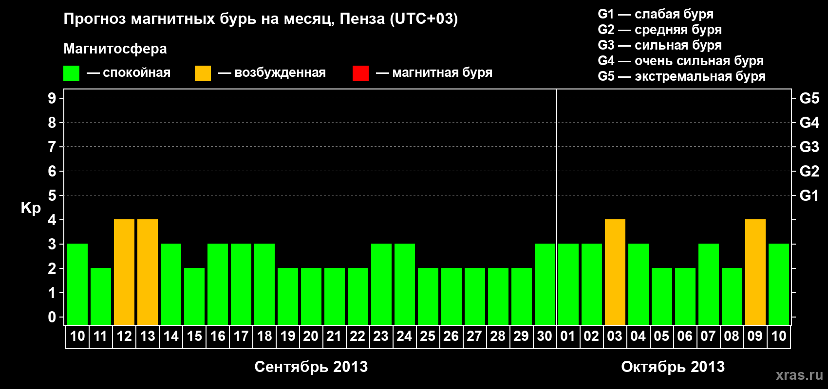 Прогноз магнитных бурь в Пензе — 10 сентября 2013 года