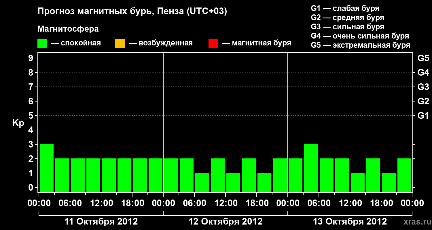 Прогноз магнитных бурь в Пензе — 11 октября 2012 года
