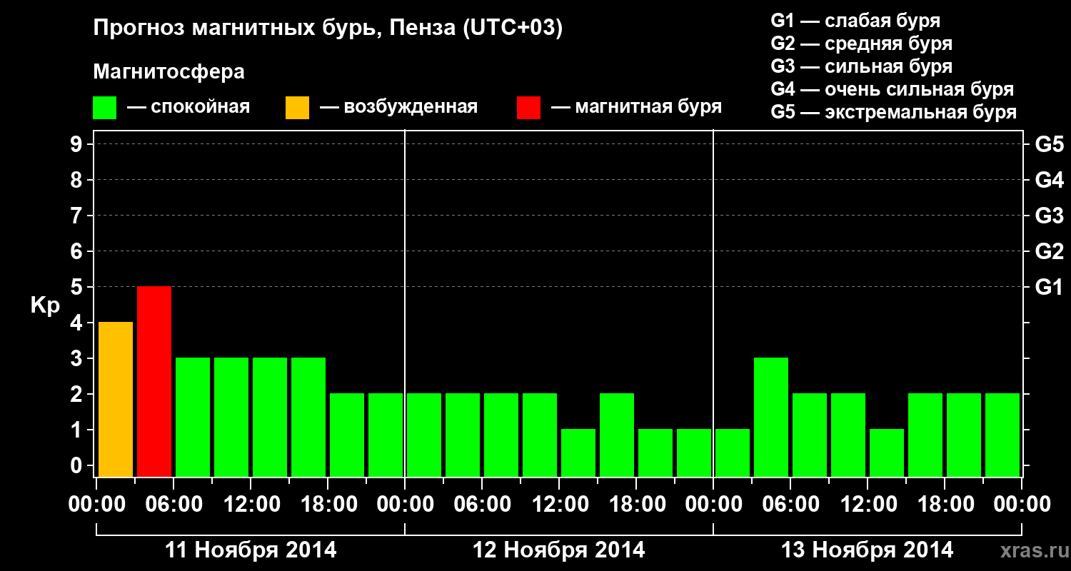 Прогноз магнитных бурь в Пензе — 11 ноября 2014 года