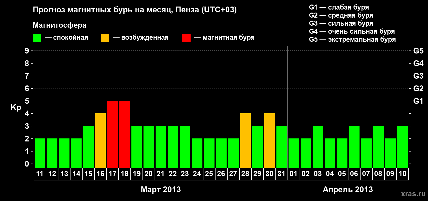 Прогноз магнитных бурь в Пензе — 11 марта 2013 года