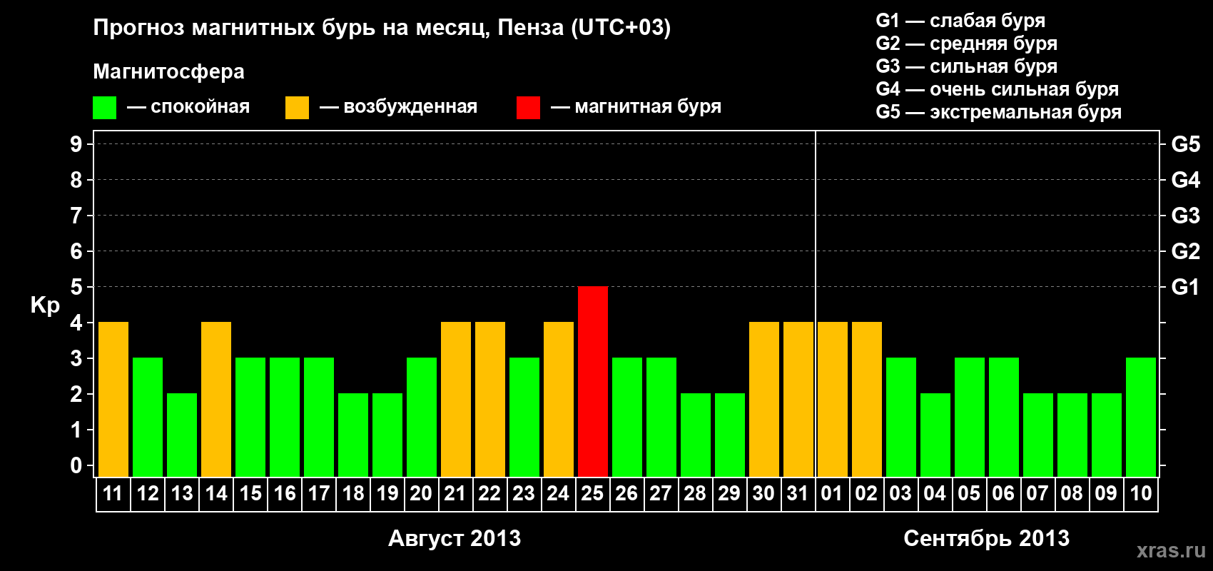 Прогноз магнитных бурь в Пензе на 11 августа 2013 года