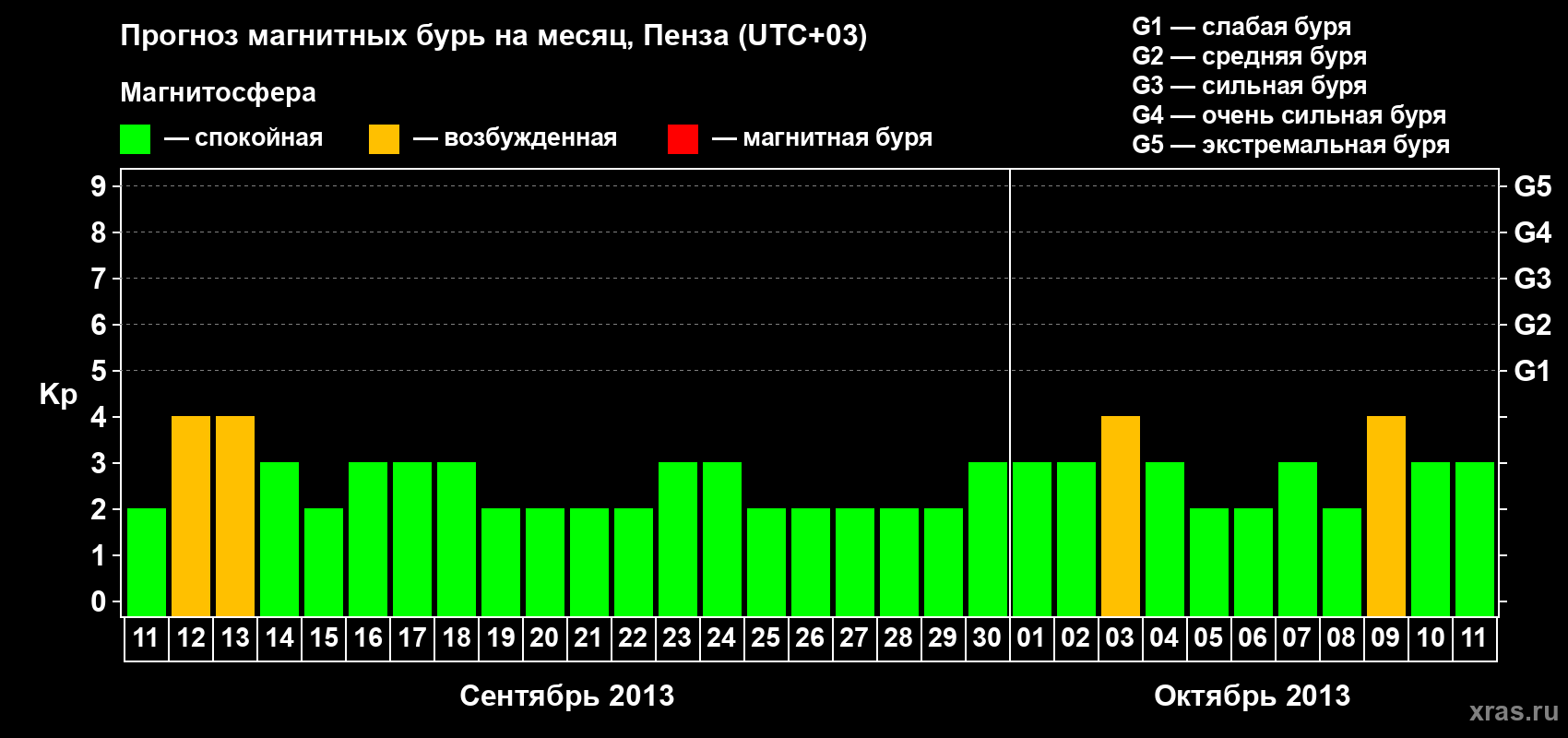 Прогноз магнитных бурь в Пензе — 11 сентября 2013 года