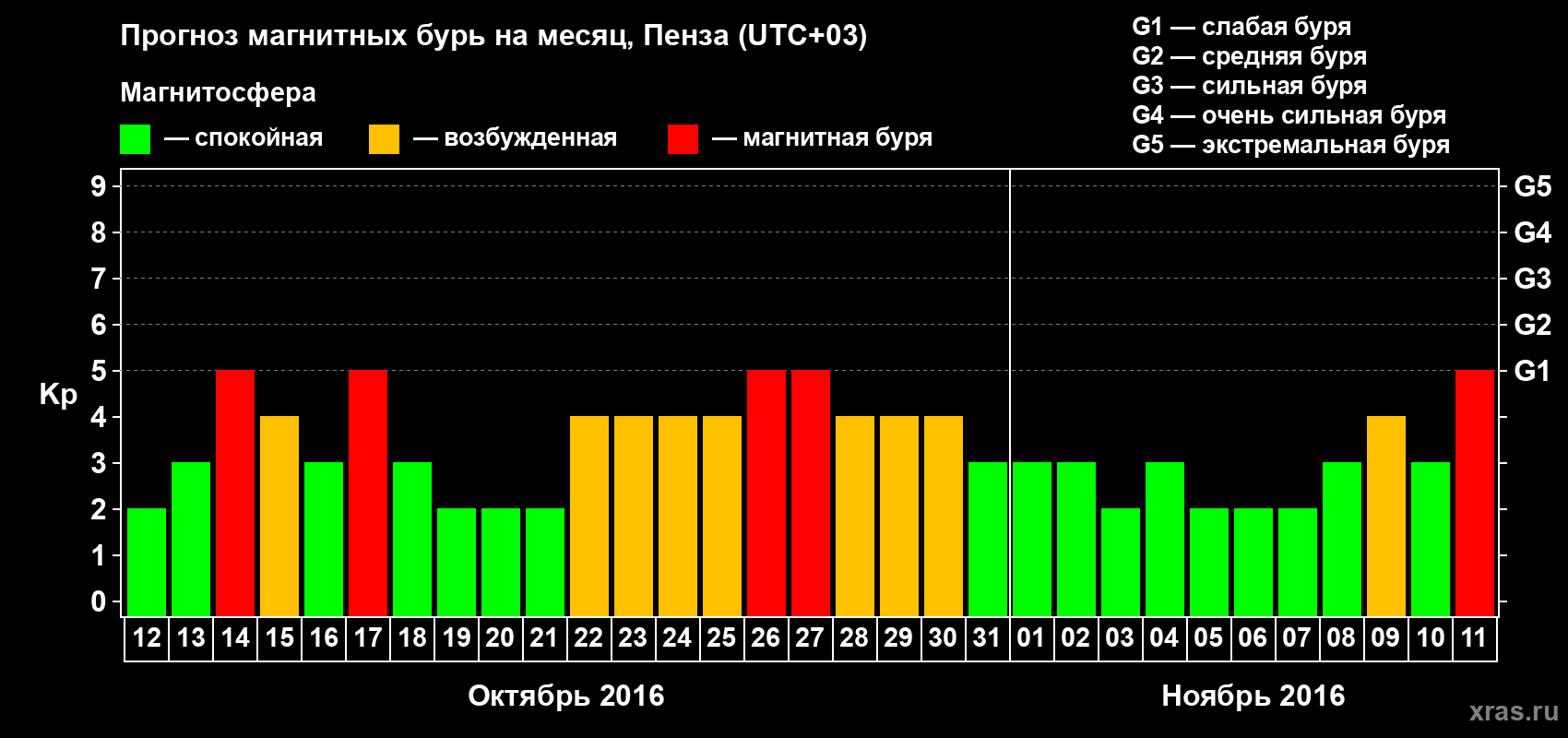 Прогноз магнитных бурь в Пензе — 12 октября 2016 года