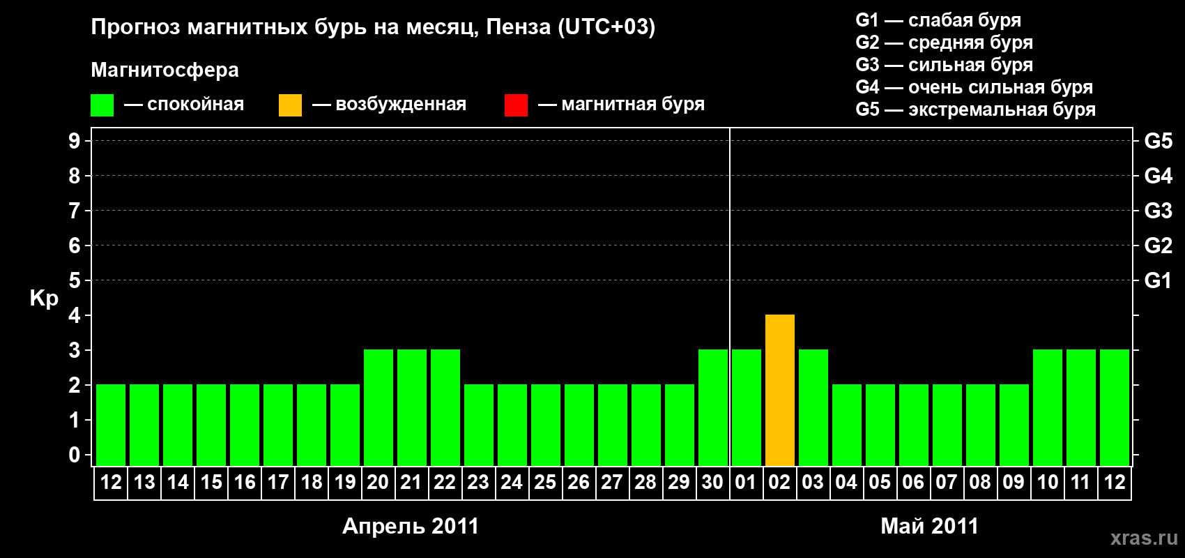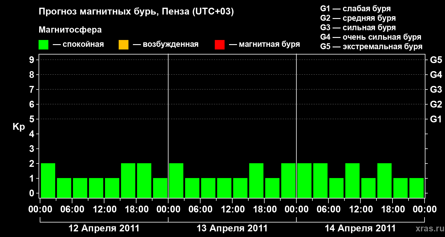Прогноз магнитных бурь в Пензе — 12 апреля 2011 года