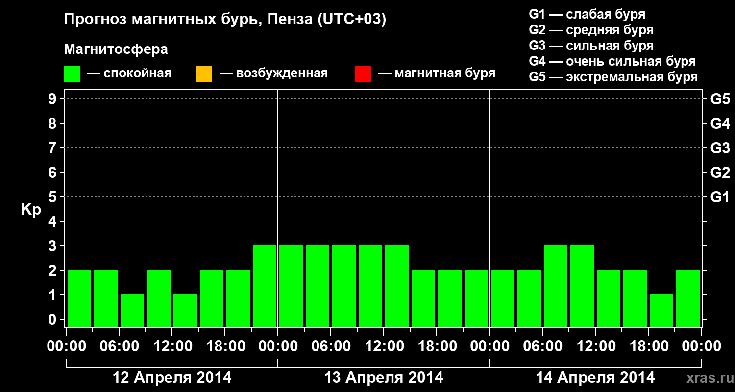 Прогноз магнитных бурь в Пензе — 12 апреля 2014 года