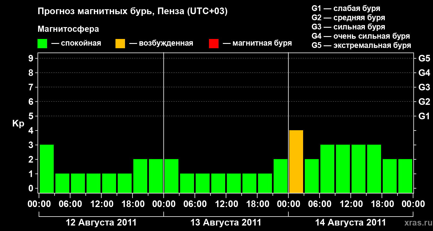 Прогноз магнитных бурь в Пензе — 12 августа 2011 года