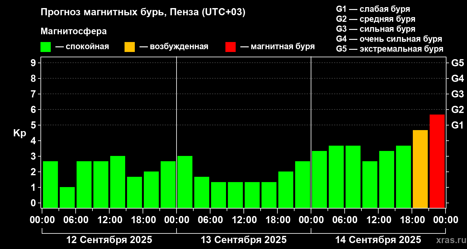 Прогноз магнитных бурь в Пензе — 12 сентября 2025 года