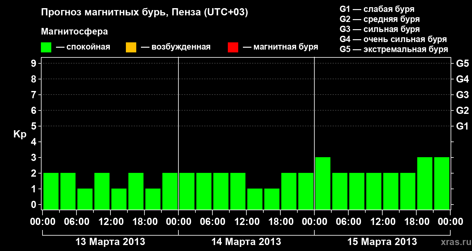 Прогноз магнитных бурь в Пензе — 13 марта 2013 года