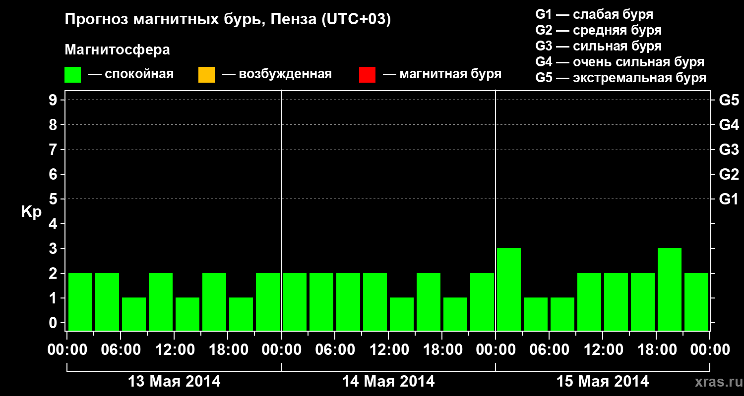 Прогноз магнитных бурь в Пензе — 13 мая 2014 года