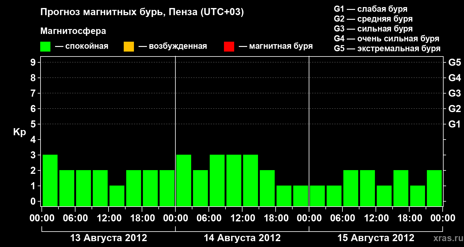 Прогноз магнитных бурь в Пензе — 13 августа 2012 года