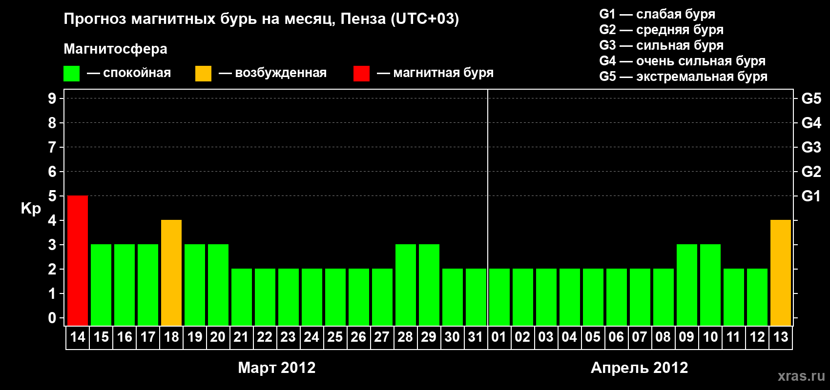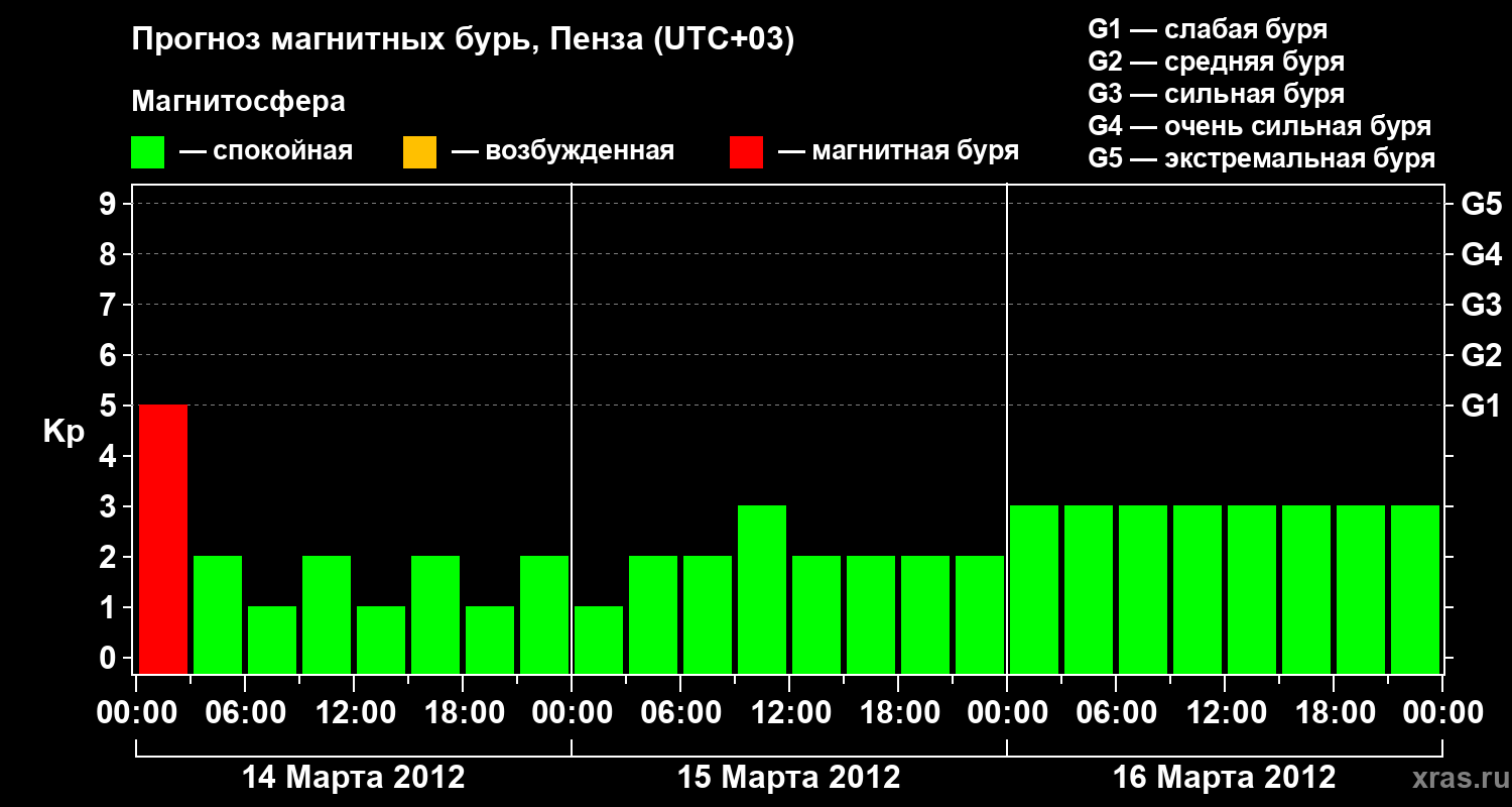 Прогноз магнитных бурь в Пензе на 14 марта 2012 года