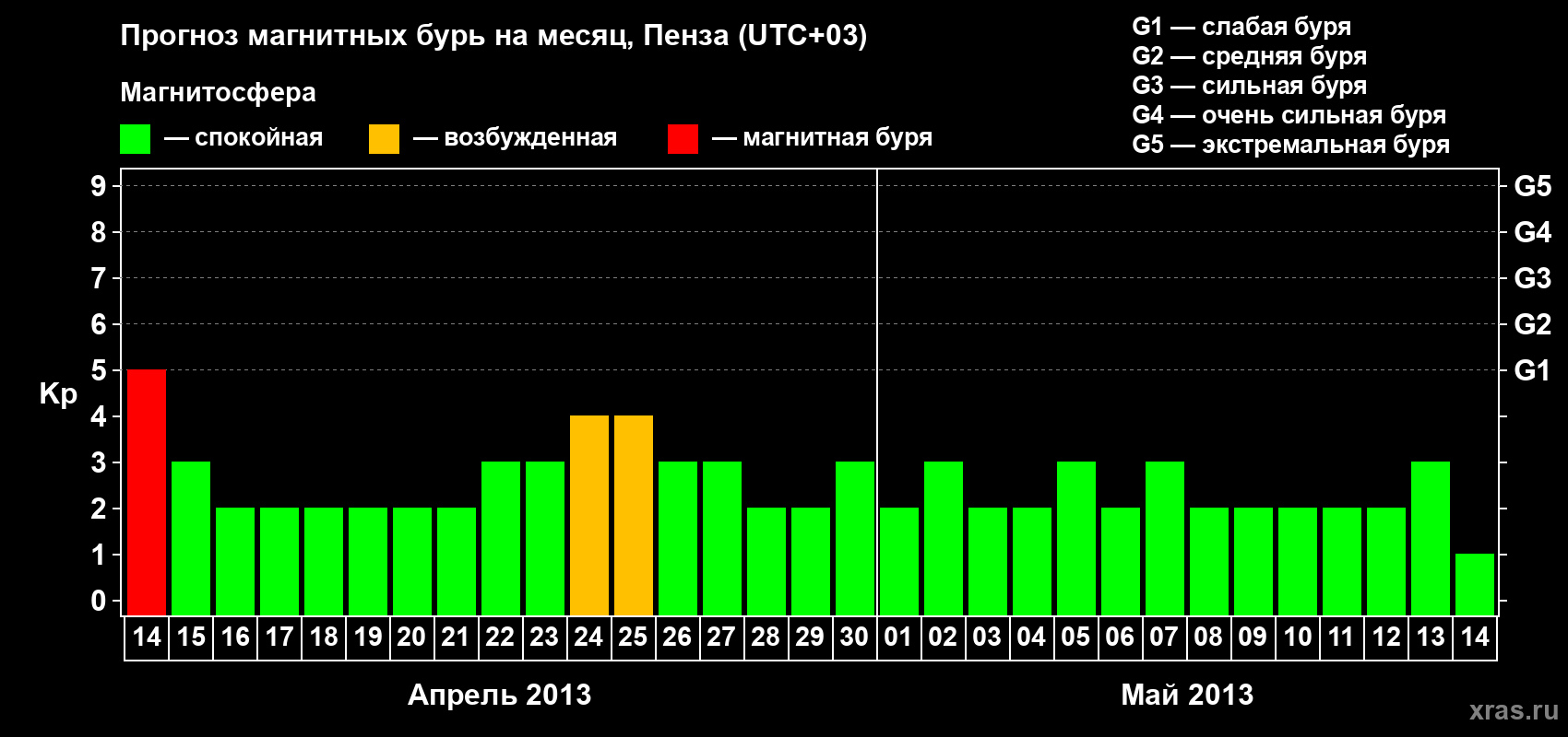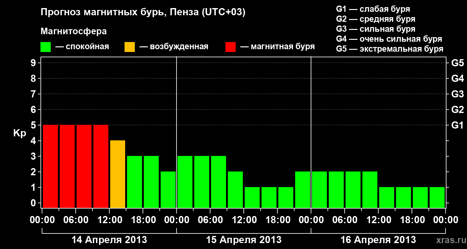 Прогноз магнитных бурь в Пензе — 14 апреля 2013 года