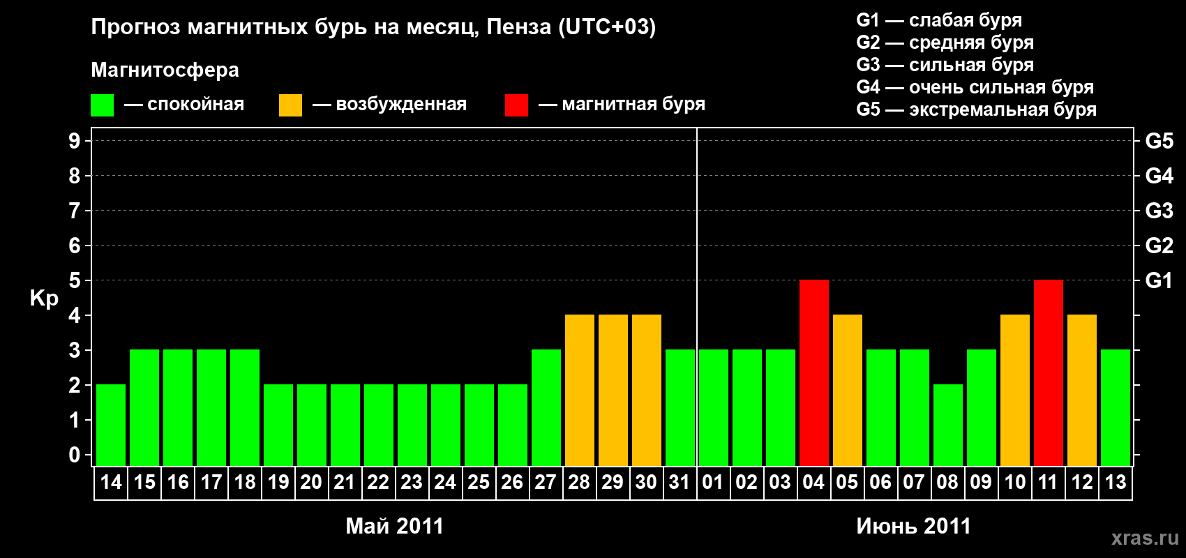 Прогноз магнитных бурь в Пензе — 14 мая 2011 года