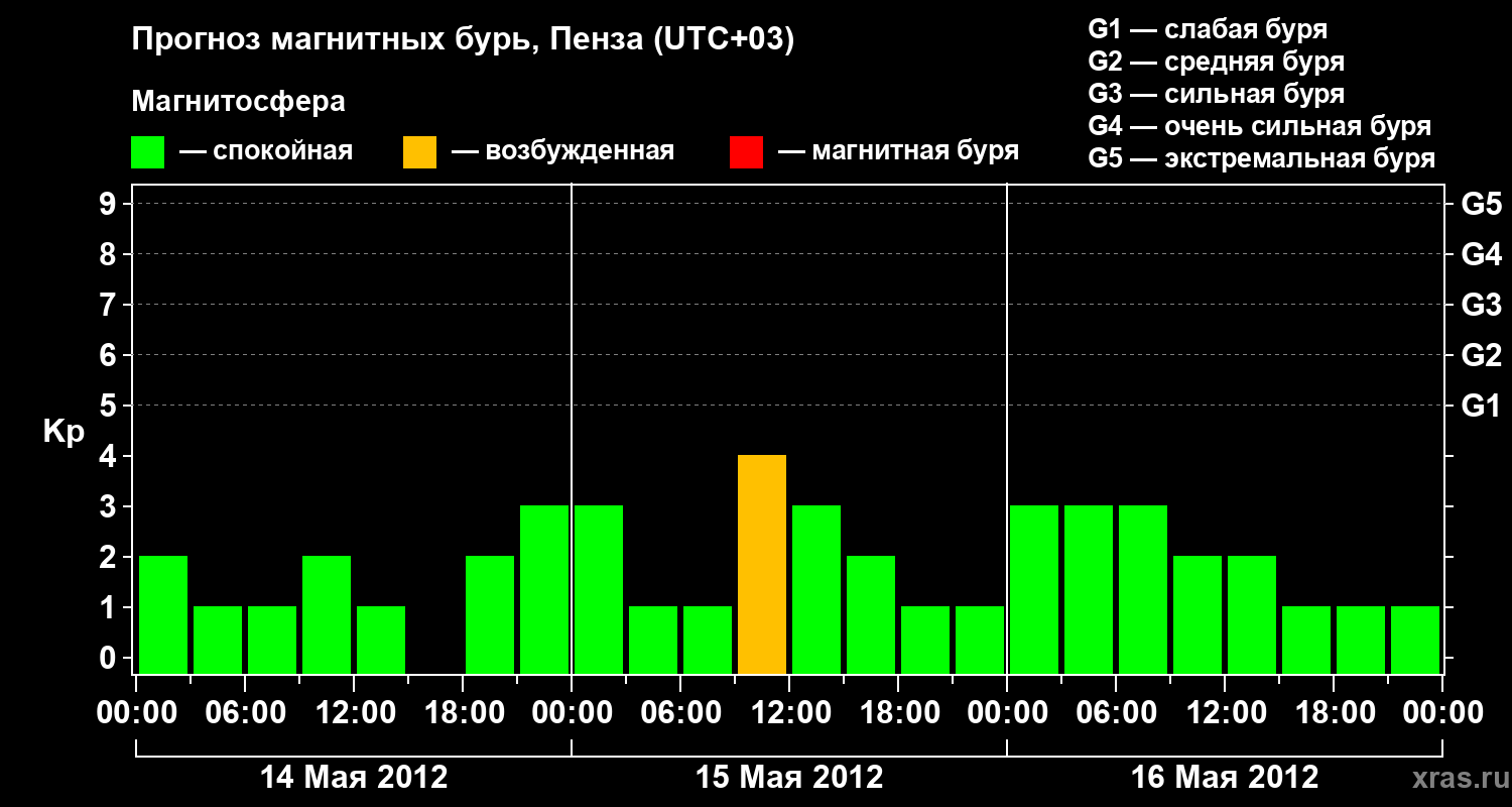 Прогноз магнитных бурь в Пензе — 14 мая 2012 года