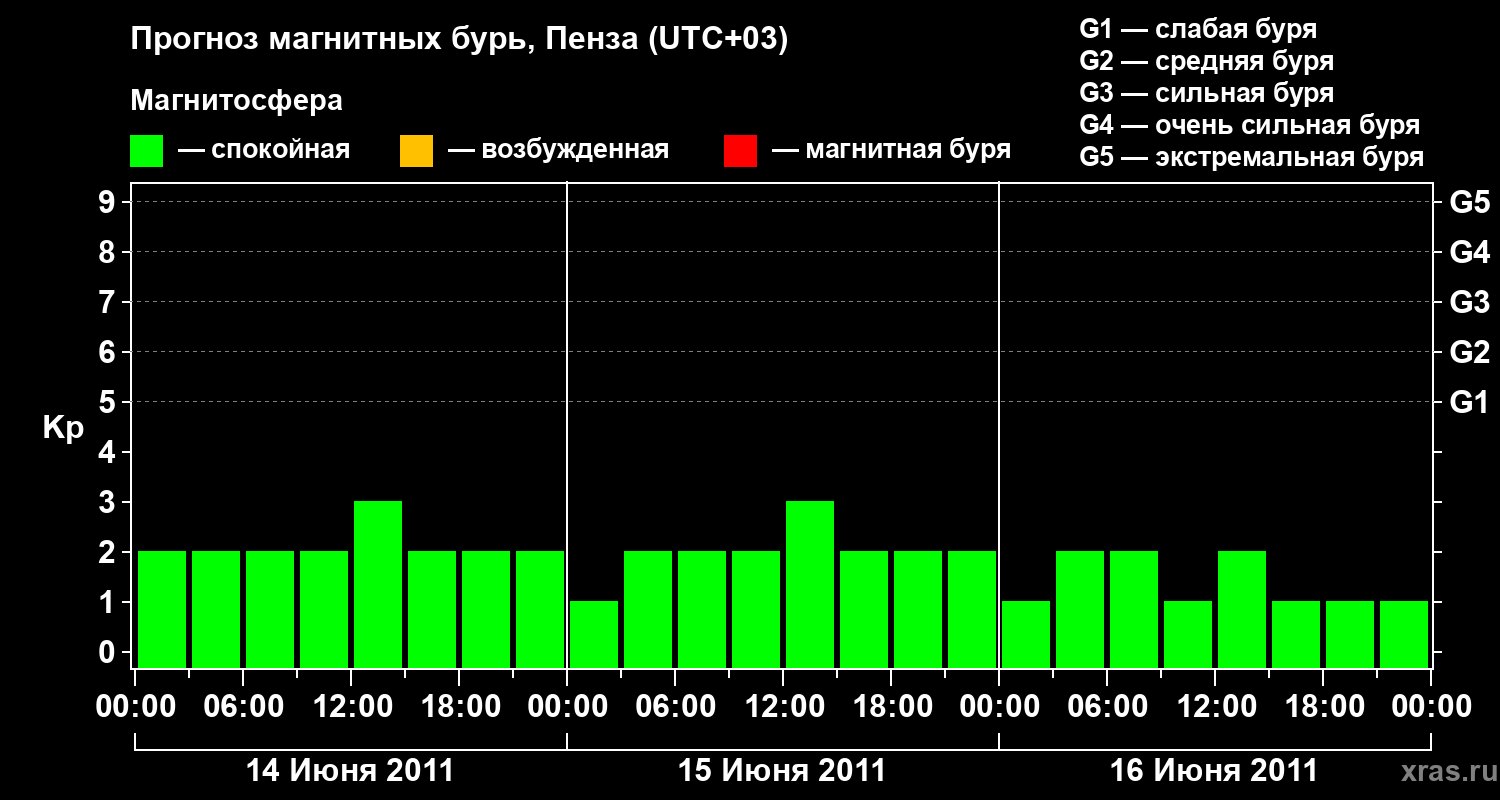 Прогноз магнитных бурь в Пензе — 14 июня 2011 года