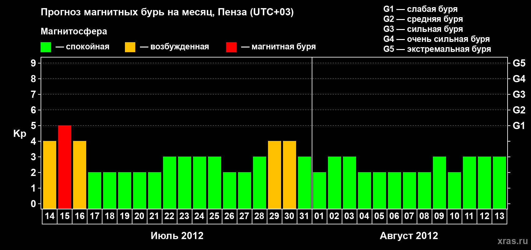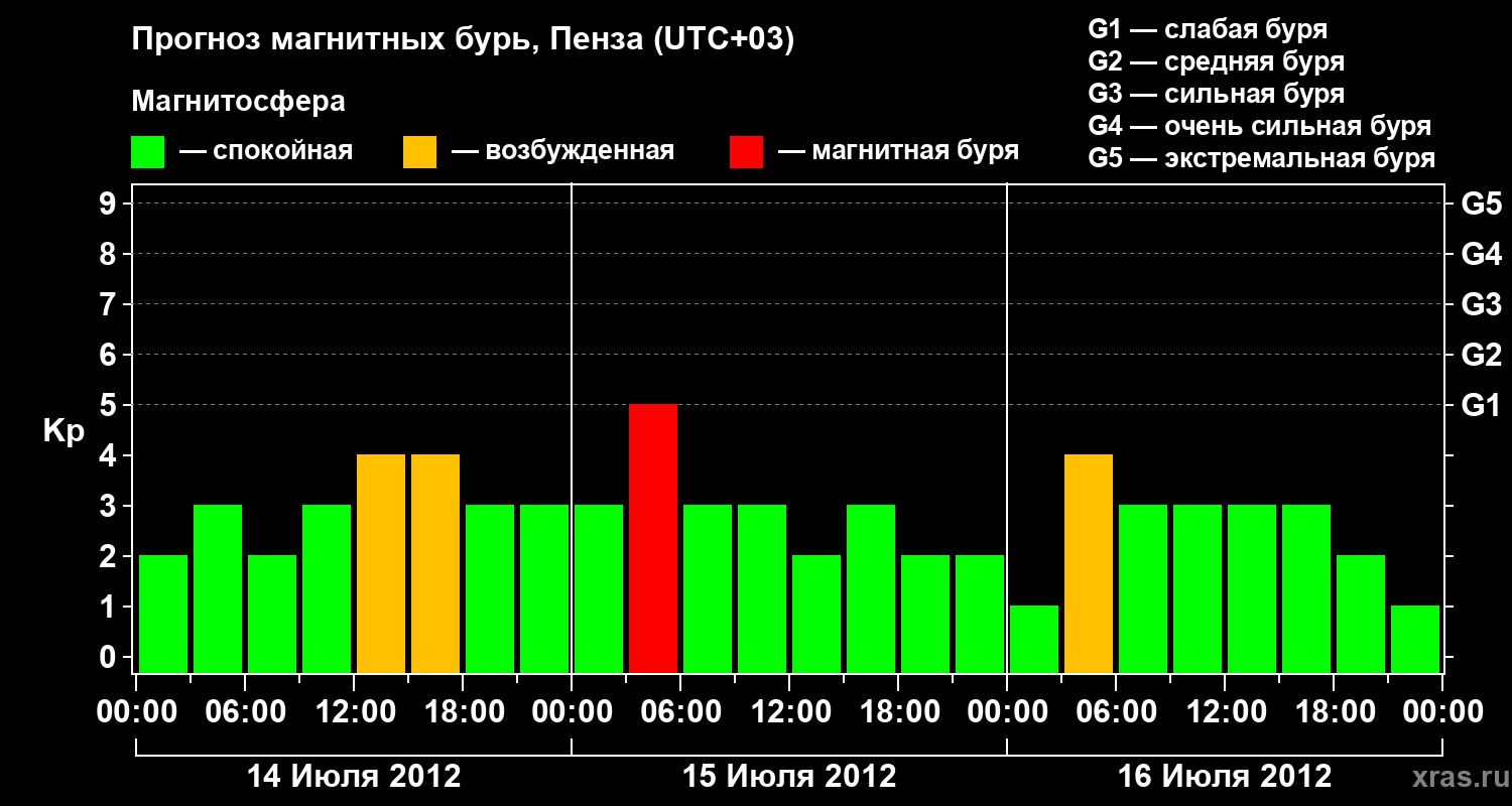 Прогноз магнитных бурь в Пензе — 14 июля 2012 года