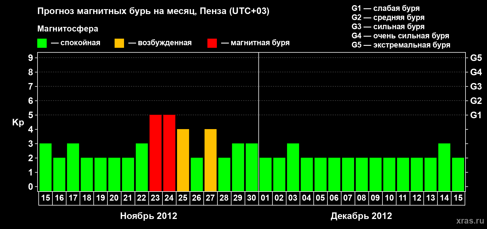 Прогноз магнитных бурь в Пензе — 15 ноября 2012 года