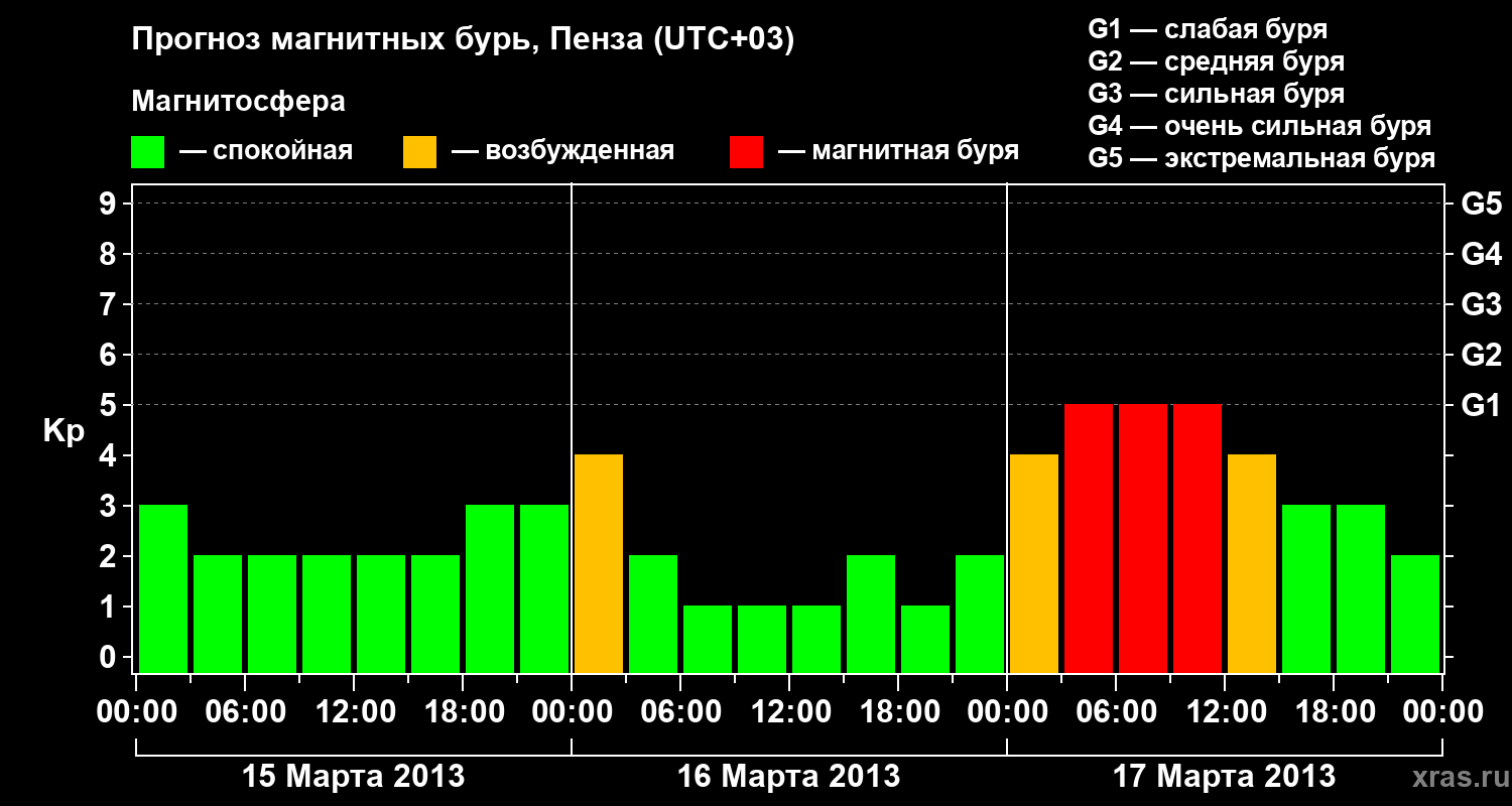 Прогноз магнитных бурь в Пензе — 15 марта 2013 года