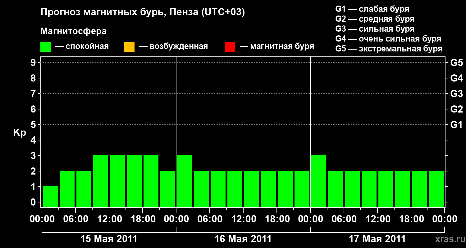 Прогноз магнитных бурь в Пензе на 15 мая 2011 года