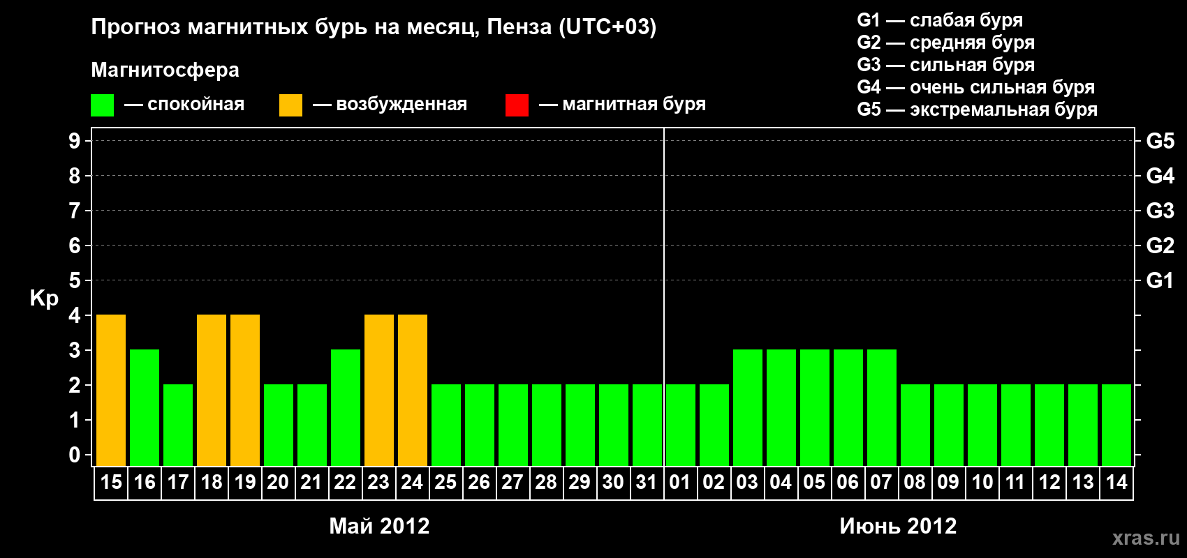 Прогноз магнитных бурь в Пензе — 15 мая 2012 года