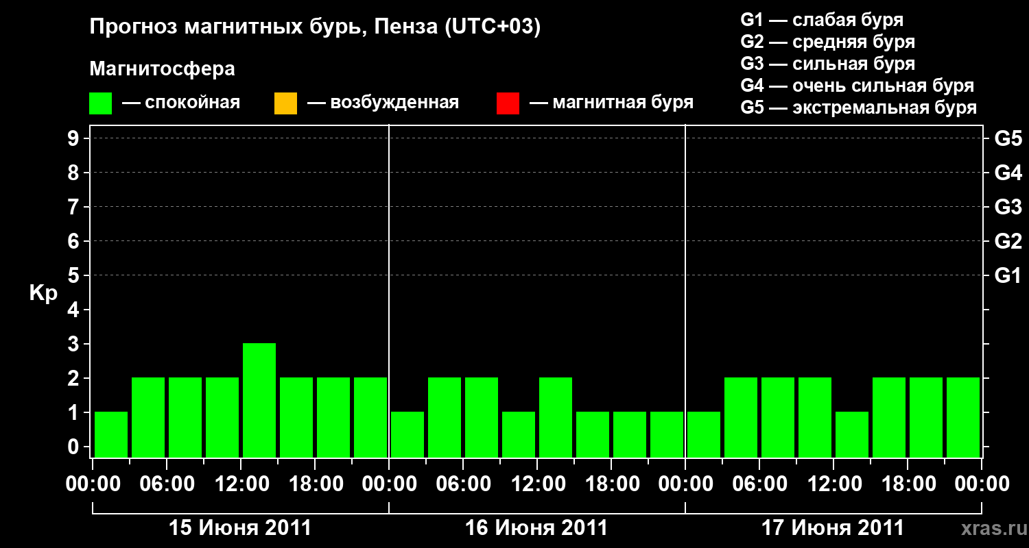 Прогноз магнитных бурь в Пензе — 15 июня 2011 года