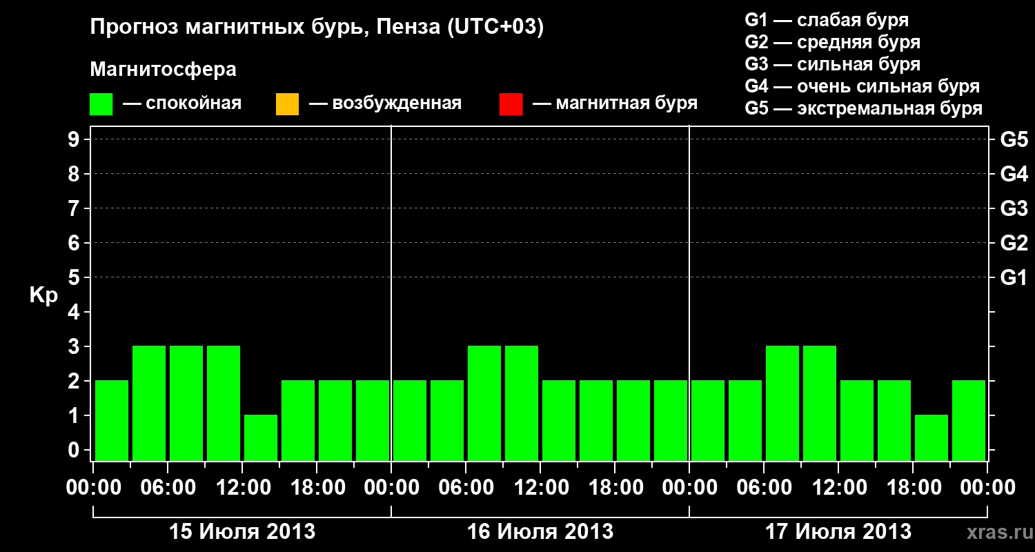 Прогноз магнитных бурь в Пензе — 15 июля 2013 года