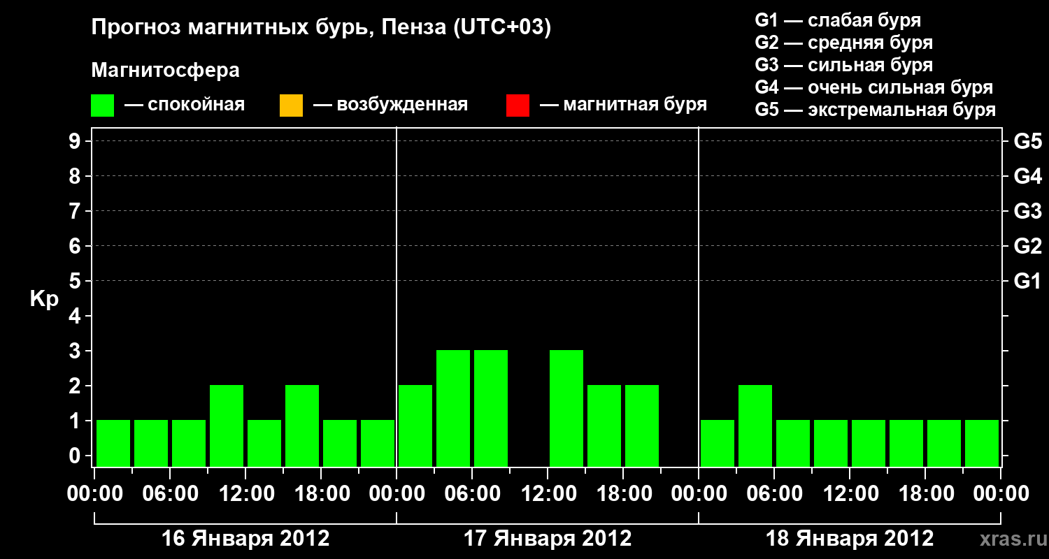 Прогноз магнитных бурь в Пензе — 16 января 2012 года