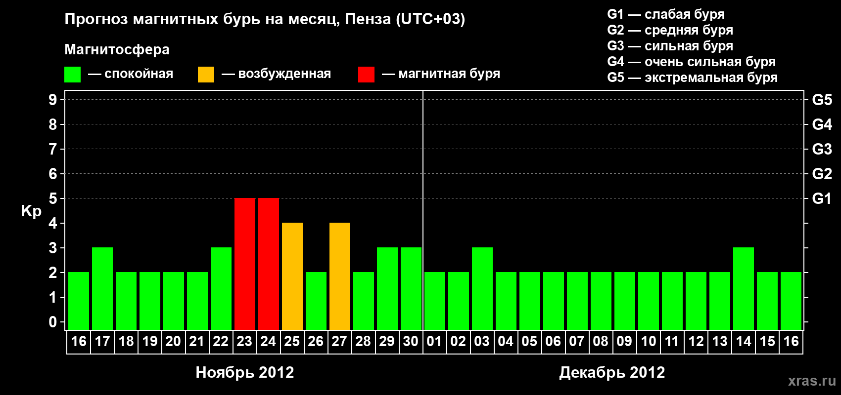 Прогноз магнитных бурь в Пензе — 16 ноября 2012 года