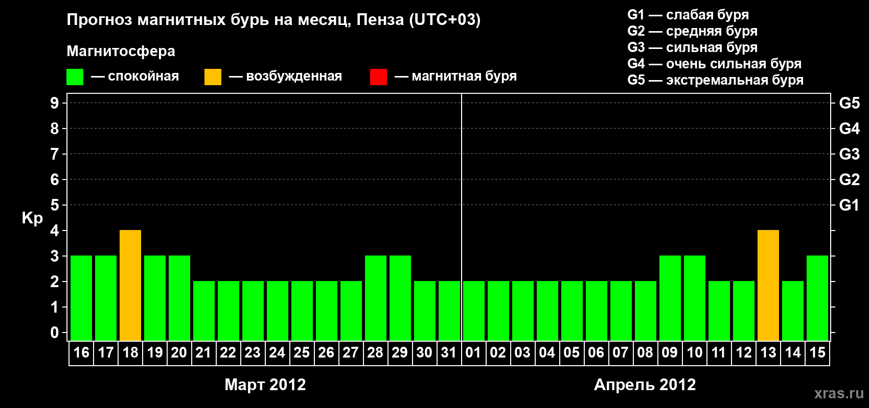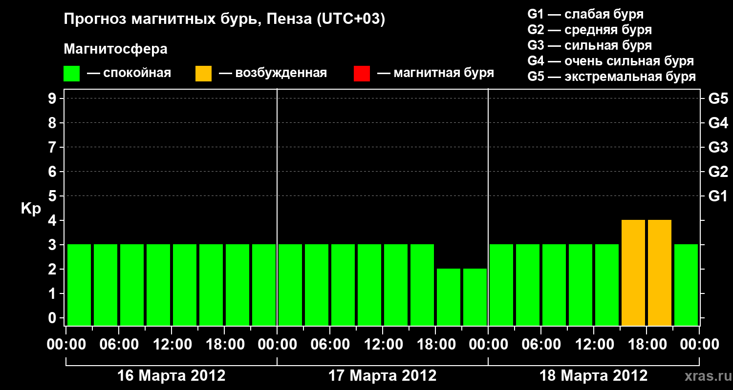 Прогноз магнитных бурь в Пензе — 16 марта 2012 года
