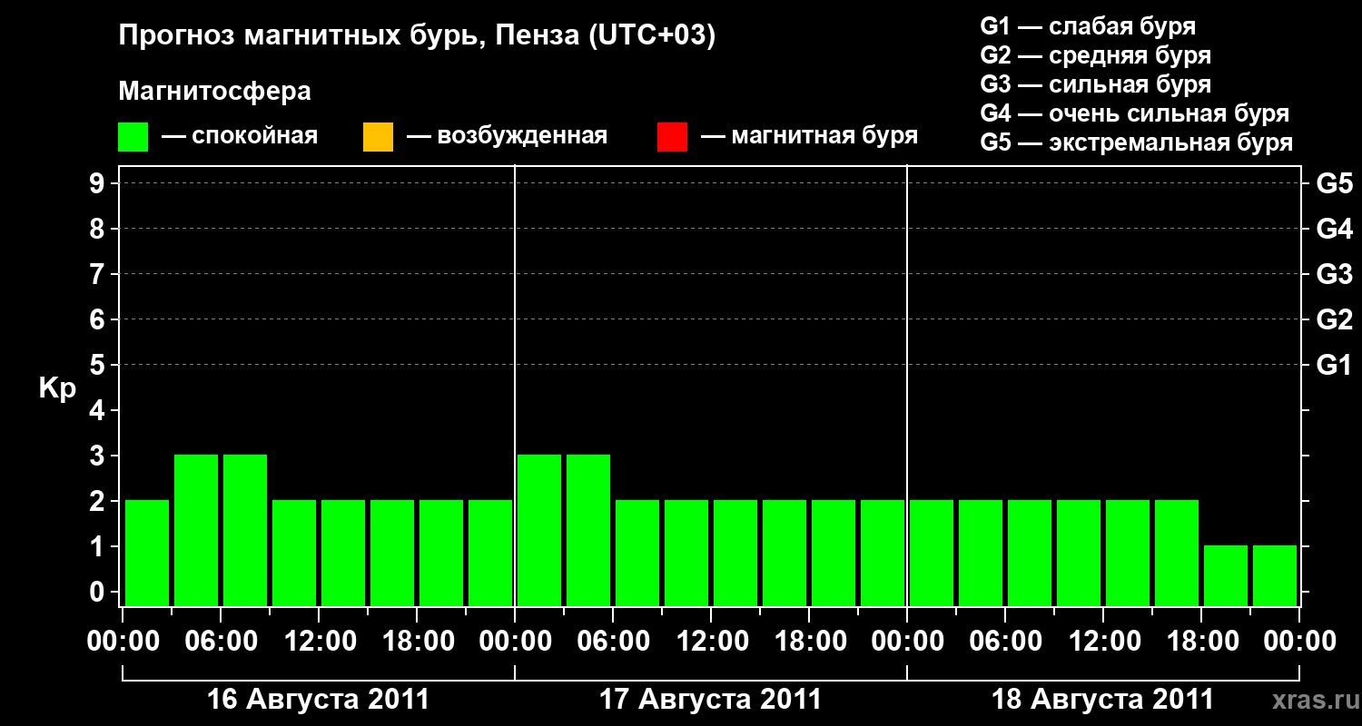 Прогноз магнитных бурь в Пензе — 16 августа 2011 года