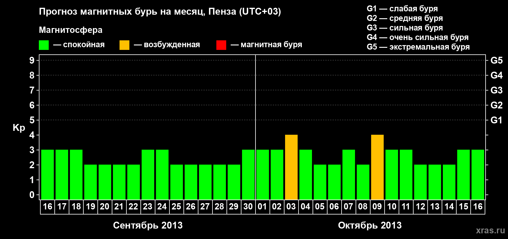 Прогноз магнитных бурь в Пензе — 16 сентября 2013 года