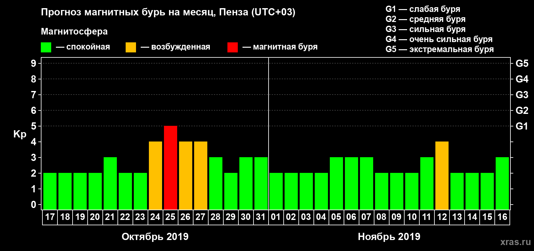 Прогноз магнитных бурь в Пензе — 17 октября 2019 года