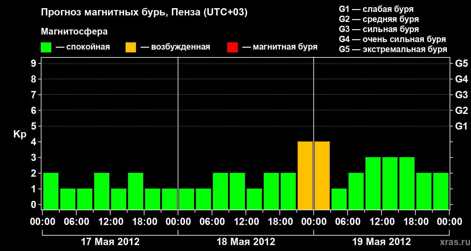 Прогноз магнитных бурь в Пензе — 17 мая 2012 года