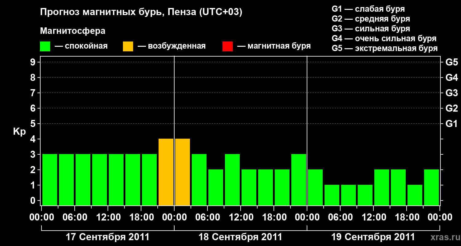 Прогноз магнитных бурь в Пензе — 17 сентября 2011 года