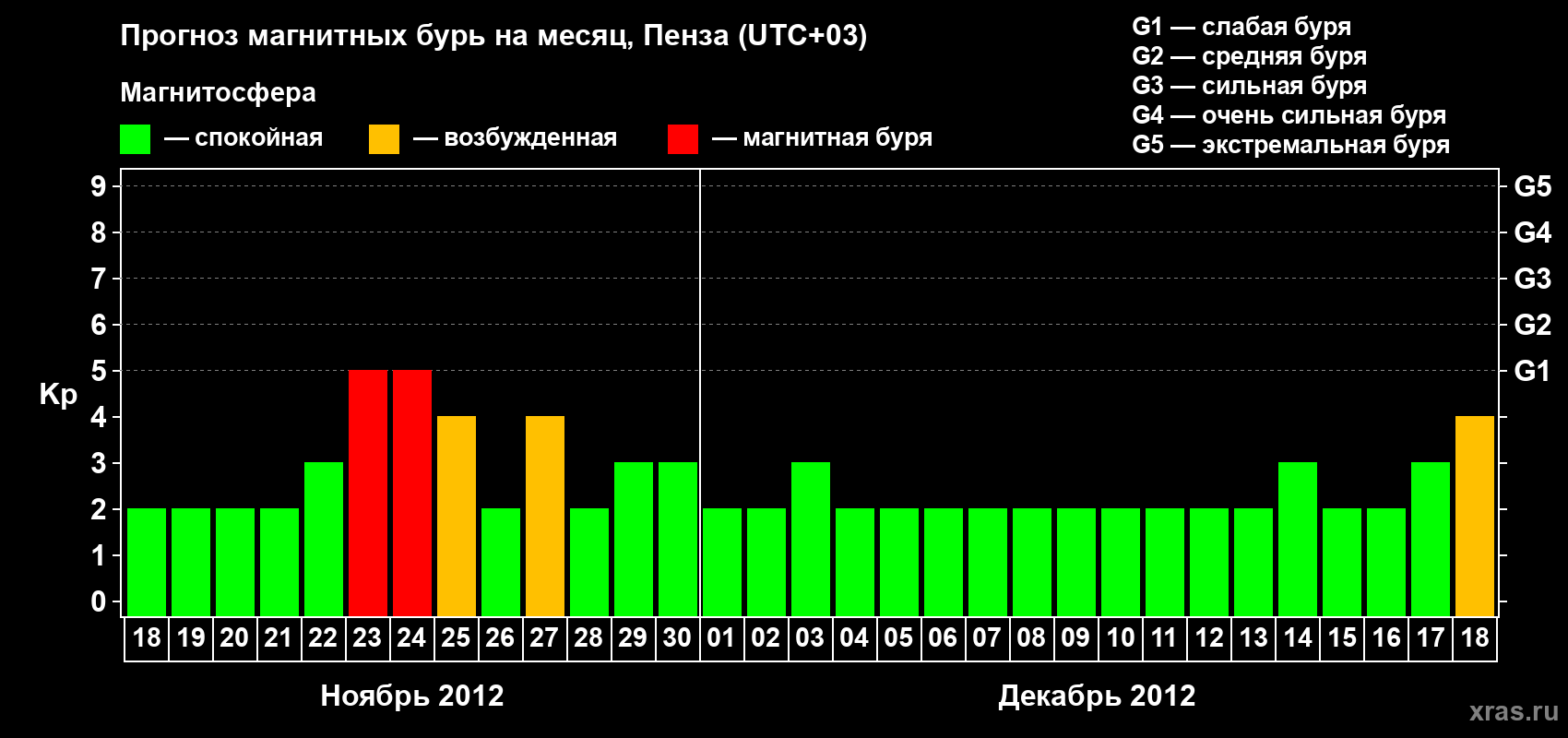 Прогноз магнитных бурь в Пензе — 18 ноября 2012 года