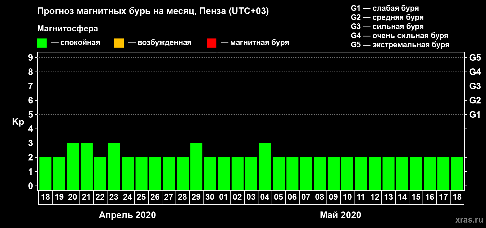 Прогноз магнитных бурь в Пензе — 18 апреля 2020 года