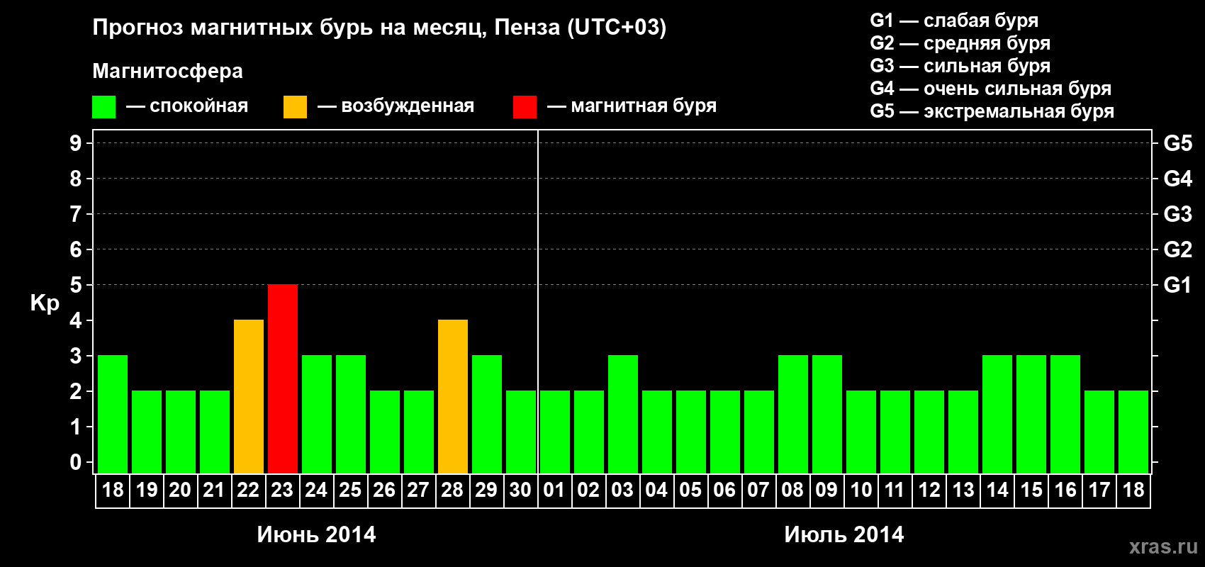 Прогноз магнитных бурь в Пензе — 18 июня 2014 года