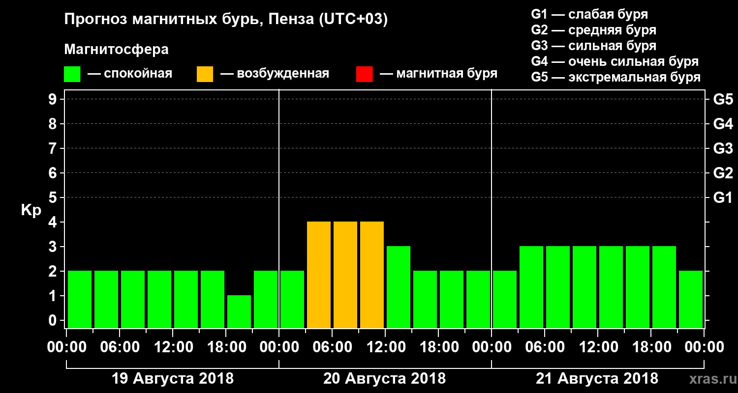 Прогноз магнитных бурь в Пензе на 19 августа 2018 года