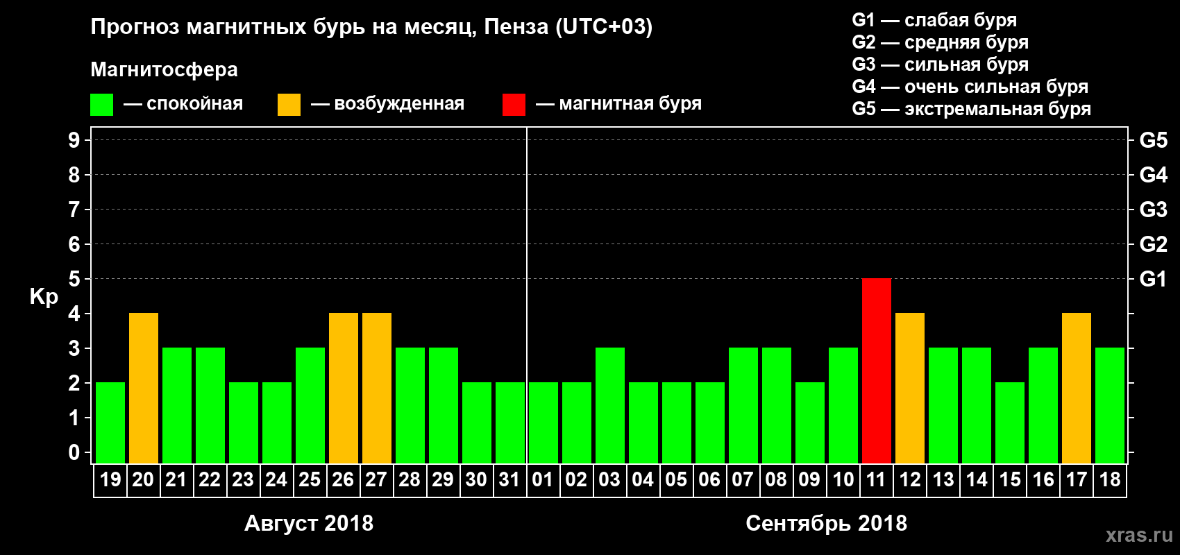 Прогноз магнитных бурь в Пензе — 19 августа 2018 года