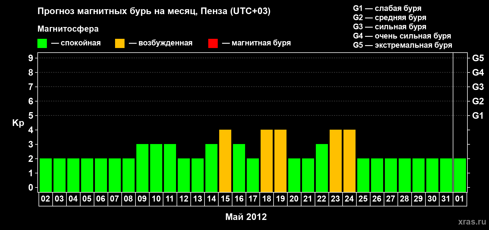 Прогноз магнитных бурь в Пензе — 2 мая 2012 года