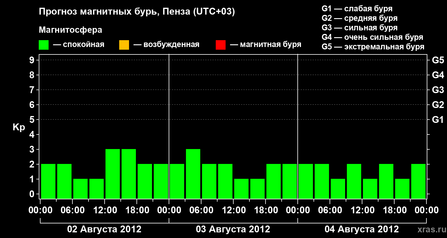 Прогноз магнитных бурь в Пензе на 2 августа 2012 года