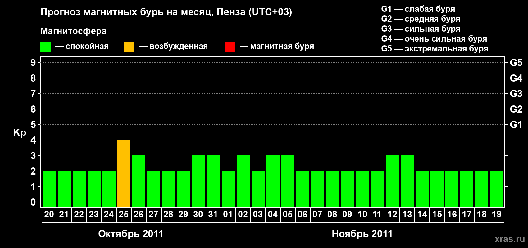 Прогноз магнитных бурь в Пензе — 20 октября 2011 года