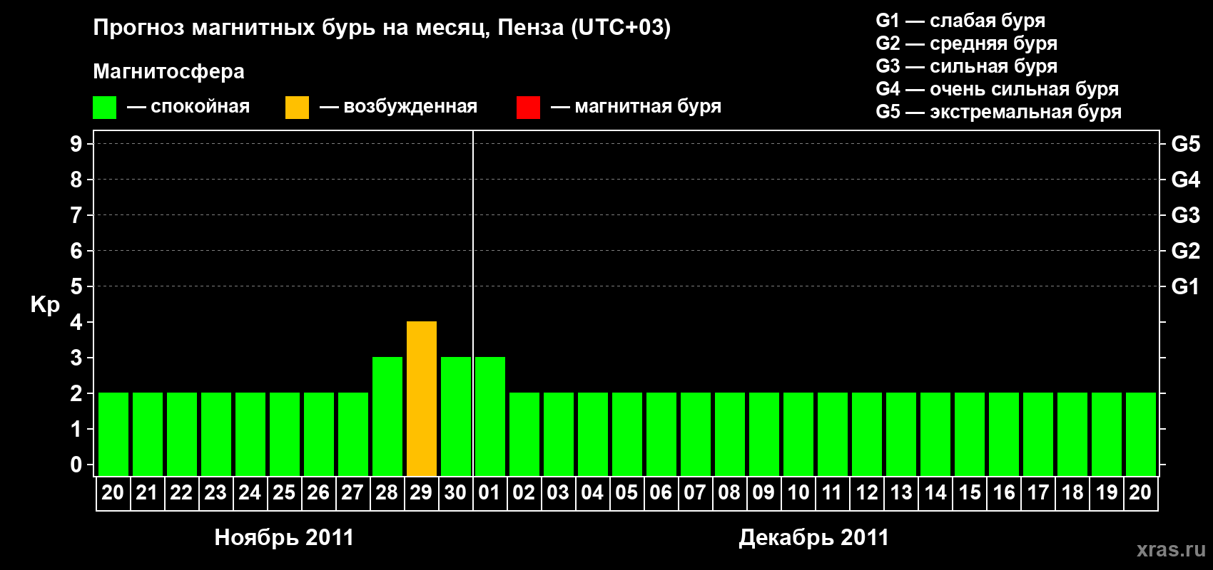 Прогноз магнитных бурь в Пензе — 20 ноября 2011 года