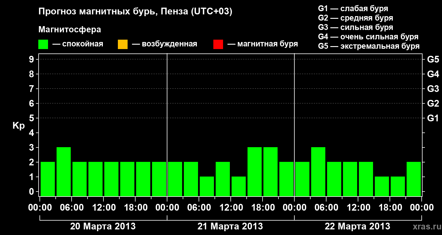 Прогноз магнитных бурь в Пензе — 20 марта 2013 года