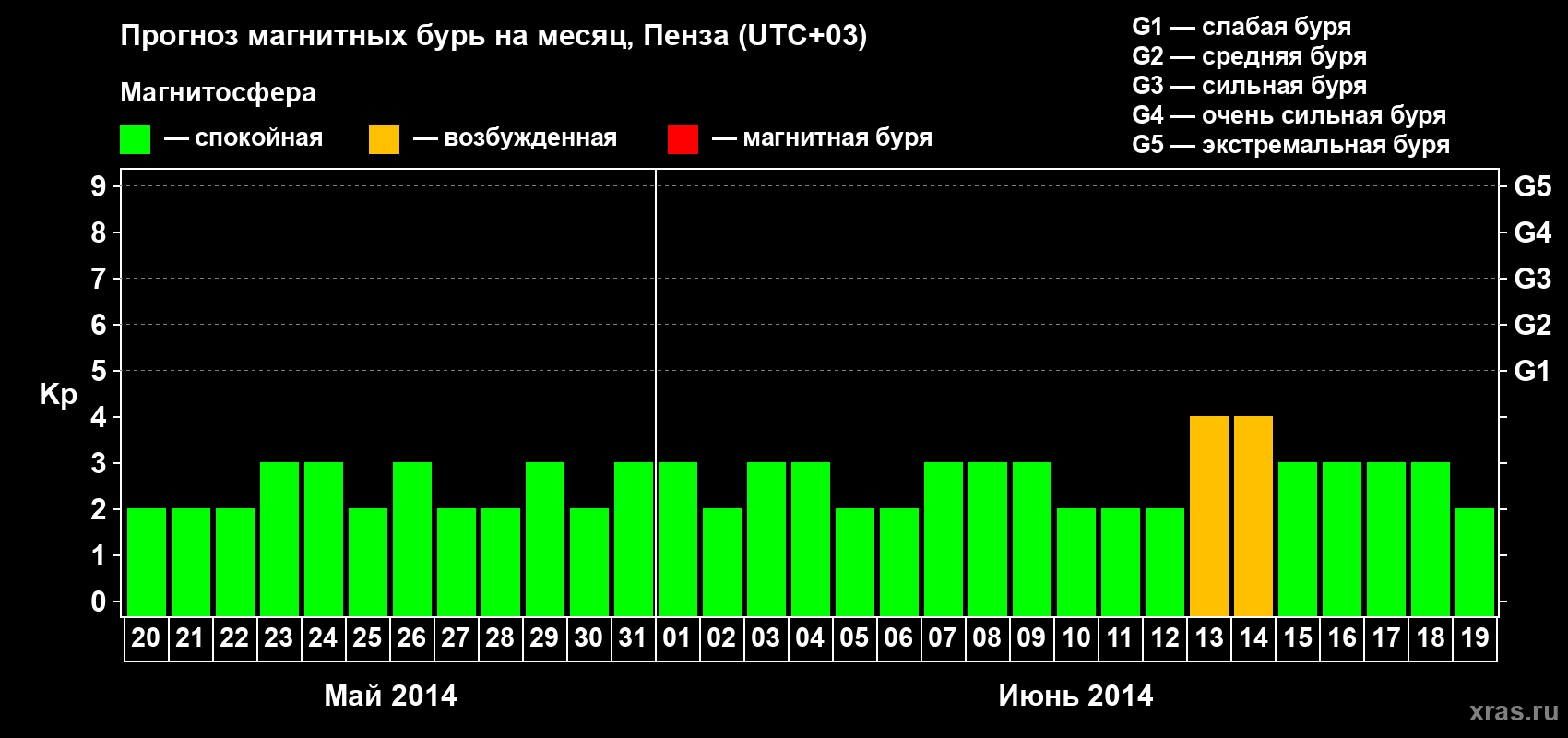 Прогноз магнитных бурь в Пензе — 20 мая 2014 года